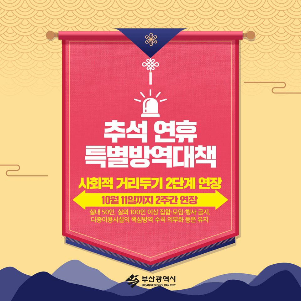 부산시 사회적 거리두기 2단계 방역 강화 조치 알림 8 21 31 및 기간연장 9 20